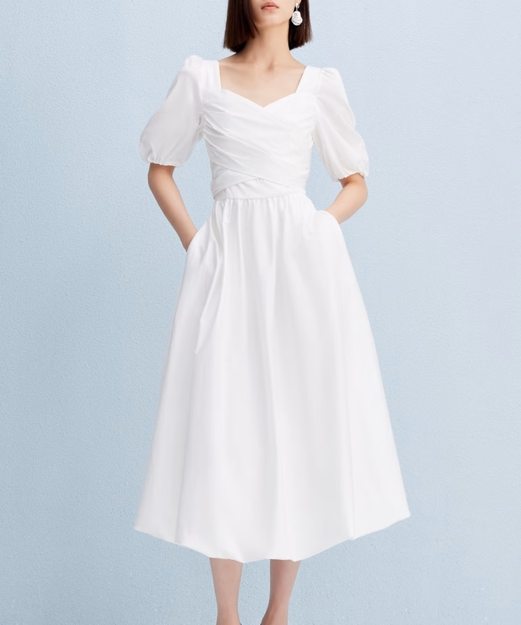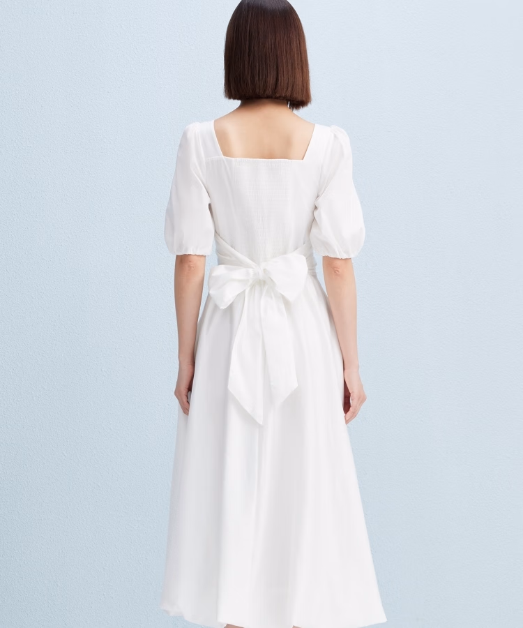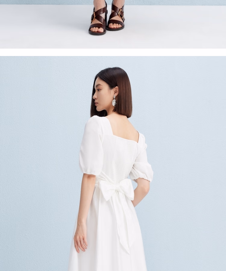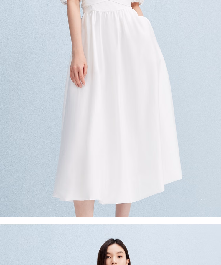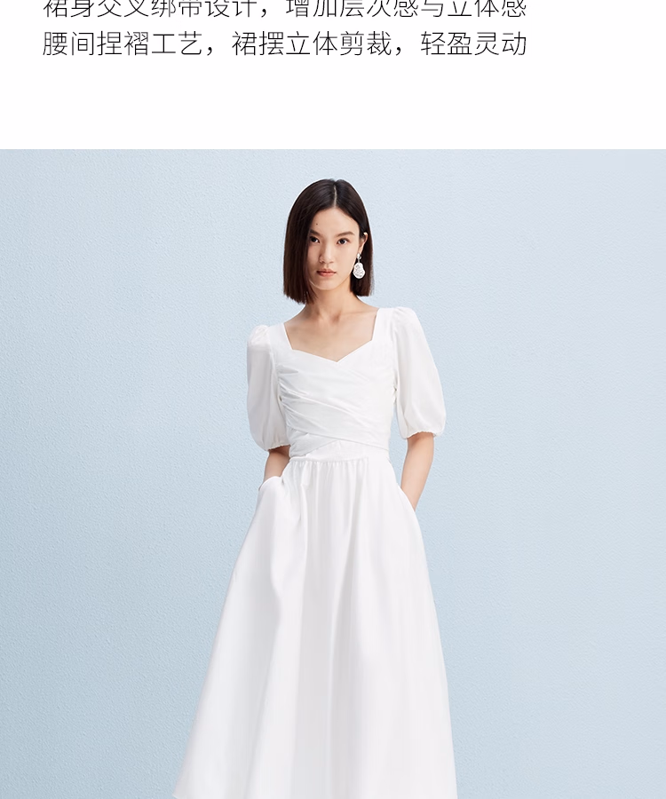 VEROMODA连衣裙女2025秋季新款含棉交叉绑带捏褶方领长裙32537D003 本白色 M