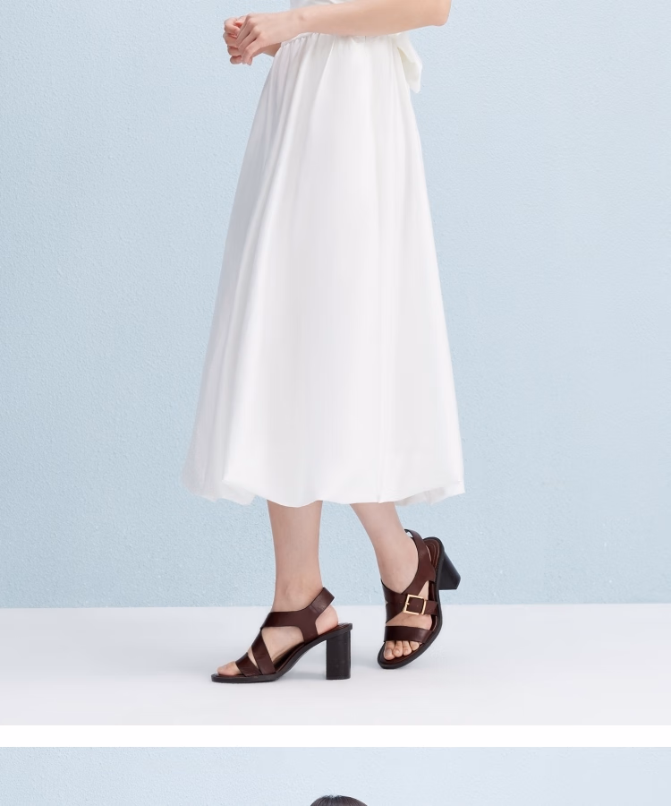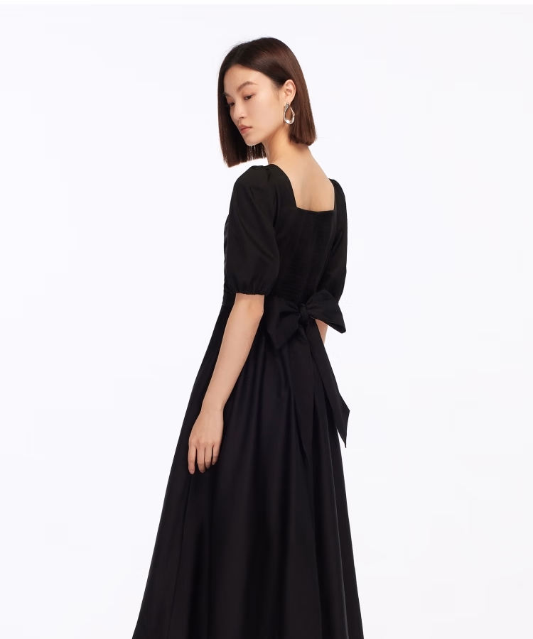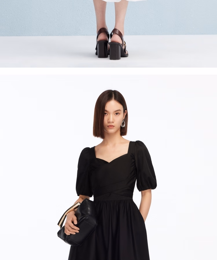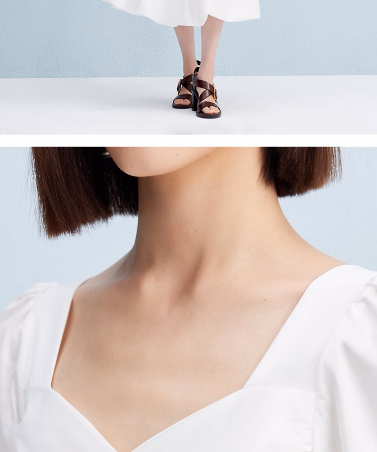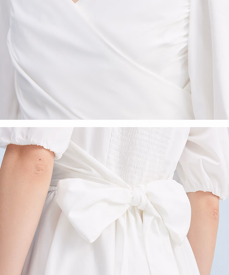 VEROMODA连衣裙女2025秋季新款含棉交叉绑带捏褶方领长裙32537D003 本白色 M