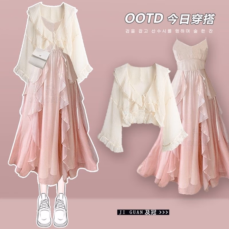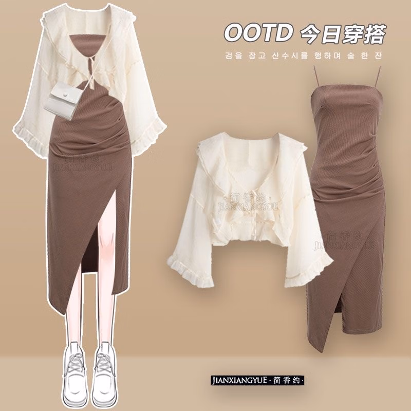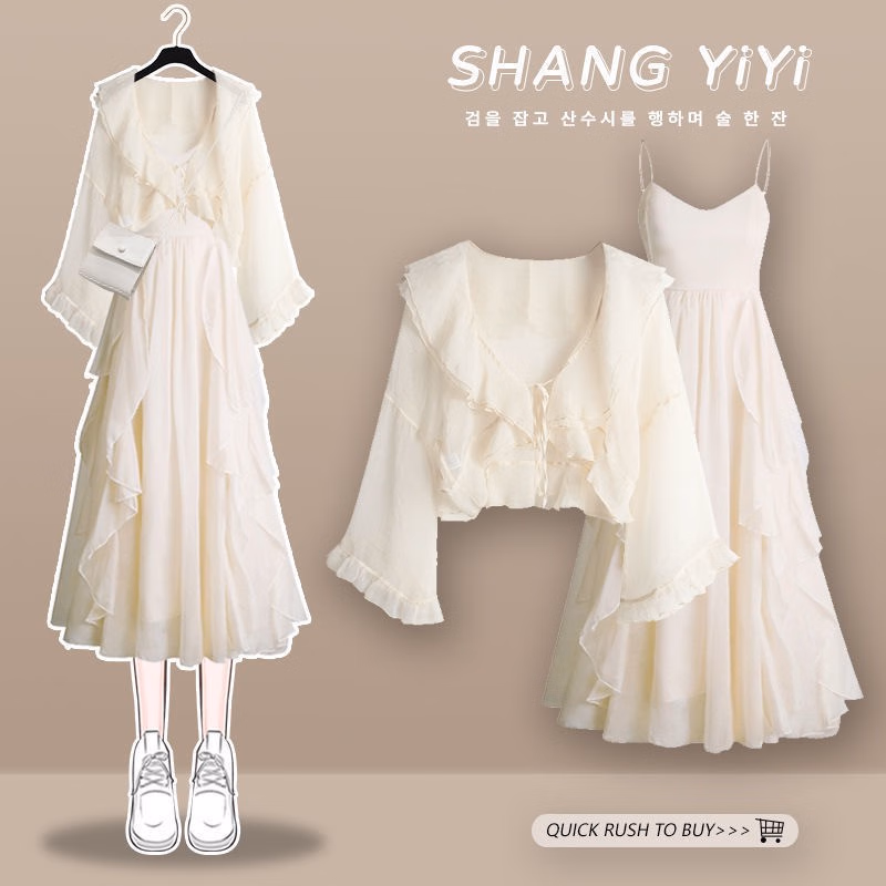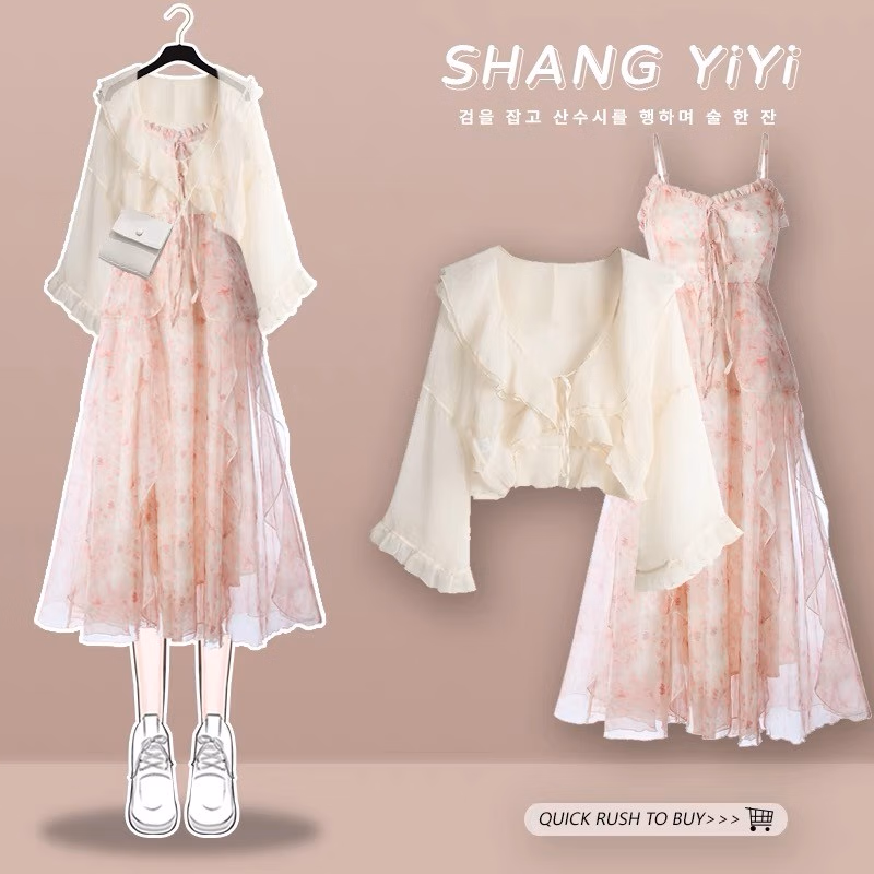 雪妃蓝琪(XUEFEILANQI)法式连衣裙新款2025裙子夏季女装气质绝美仙女温柔风吊带长裙子 杏色上衣+杏色纱裙 M 【80-100斤】