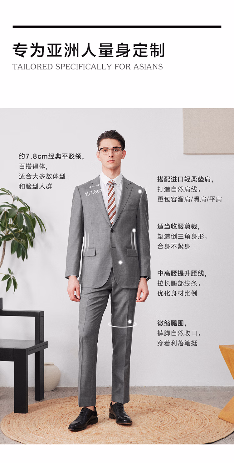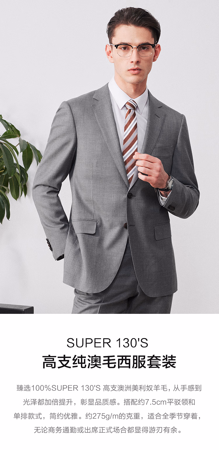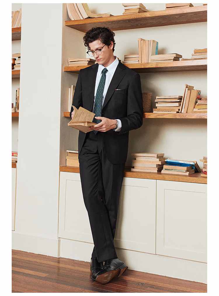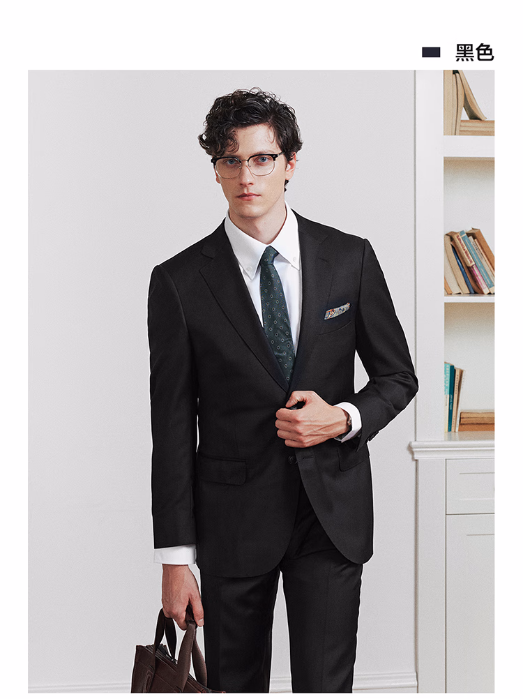 By Creations柏品纯羊毛西装套装男士商务职业正装修身高档伴郎服新郎结婚西服 黑色套装 46