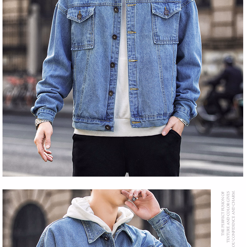 花花公子春秋季潮牌花花公子男士纯色牛仔外套高级感时尚百搭痞帅男生夹克 黑色 常规 L